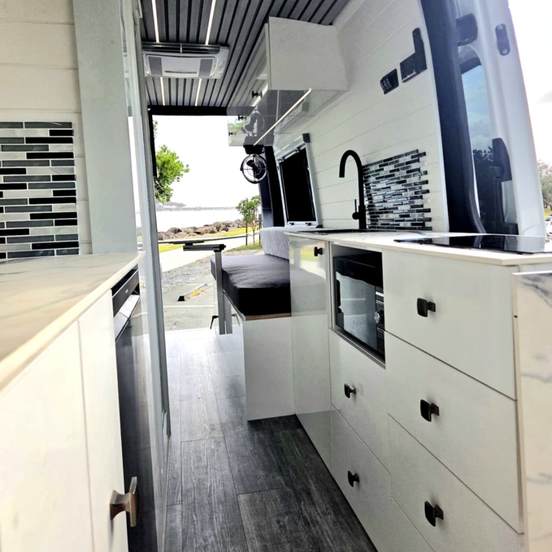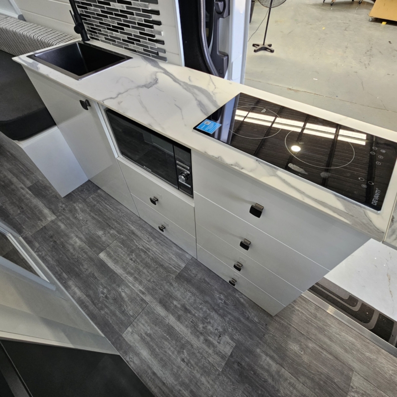 - Ultra light weight wall panelling (no painting in van easy clean surfaces)