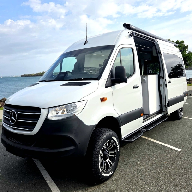 Campers – Off-Grid 4×4 Van Conversion Mercedes-Benz Sprinter 419CDI, LWB, High Roof, Compliance 2025. This professionally built Campers off-grid 4×4 is based on the highly capable Mercedes-Benz Sprinter 419CDI. Designed for serious touring and long-term off-grid living, this van combines premium Mercedes safety, a rock-solid power system, Starlink satellite internet and a highly functional interior — all finished to a high standard.